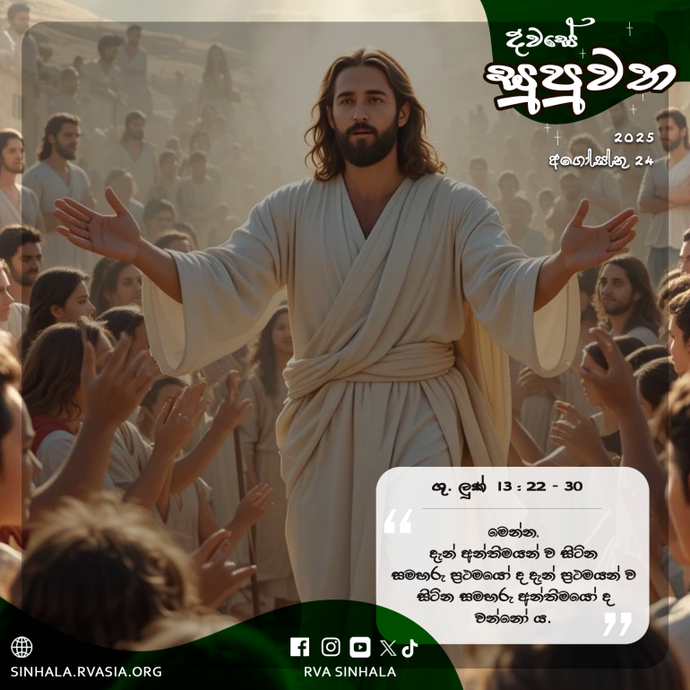 22 උන් වහන්සේ ජෙරුසලම බලා යද්දී නගර හා ගම් නියම්ගම් මැදින් අනුශාසනා කරමින් වැඩි සේක. 23 එක් කෙනෙක් කතා කොට, ”ස්වාමීනි, ගැළවීම ලබන්නෝ ස්වල්ප දෙනෙක් පමණක් දැ”යි උන් වහන්සේගෙන් ඇසී ය. උන් වහන්සේ ඔවුන්ට කතා කොට මෙසේ වදාළ සේක: 24 ”පටු දොරෙන් ඇතුළු වන්නට වීර්ය කරන්න. මන්ද, බොහෝ දෙනෙක් ඇතුළු වන්නට සොයන නමුත් ඔවුන්ට නොහැකි වේ ය යි මම ඔබට කියමි. 25 ගෙදර ස්වාමියා නැඟිට දොර වැසූ පසු ඔබ පිටත සිට දොරට තට්ටු කරමින්, ‘ස්වාමීනි, අපට දොර හැරිය මැනවැ’යි කියන කල, ‘නුඹලා කොතැනින් ආවාහු දැ යි නොදනිමි’යි ඔහු පිළිතුරු දෙනු ඇත. 26 එවිට ඔබ: ‘අපි ඔබ සමඟ කෑවෙමු, බීවෙමු, ඔබ අපේ වීදිවල ඉගැන්වූ සේකැ’යි කියන්නහු ය. 27 එහෙත් ඔහු කතා කොට, ‘නුඹලා කොතැනින් ආවාහු දැ යි මම නොදනිමි. අදමිටුකම් කරන නුඹලා සියලු දෙනා ම මා කෙරෙන් පලා යව්’ යයි කියන්නේ ය. 28 ආබ්රහම් ද ඊසාක් ද ජාකොබ් ද සියලු දිවැසිවරයන් ද දෙවියන් වහන්සේගේ රාජ්යයෙහි සිටිය දී ඔබ පිටතට දමනු ලබන කල එහි විලාප කීම ද දත්මිටිකෑම ද ඇති වේ. 29 තවද, මනුෂ්යයෝ පෙරදිගින් හා අපරදිගින් ද උතුරු දිගින් හා දකුණු දිගින් ද පැමිණ දෙවියන් වහන්සේගේ රාජ්යයෙහි මංගල භෝජනයට අසුන් ගන්නෝ ය. 30 මෙන්න, දැන් අන්තිමයන් ව සිටින සමහරු ප්රථමයෝ ද දැන් ප්රථමයන් ව සිටින සමහරු අන්තිමයෝ ද වන්නෝ ය.”