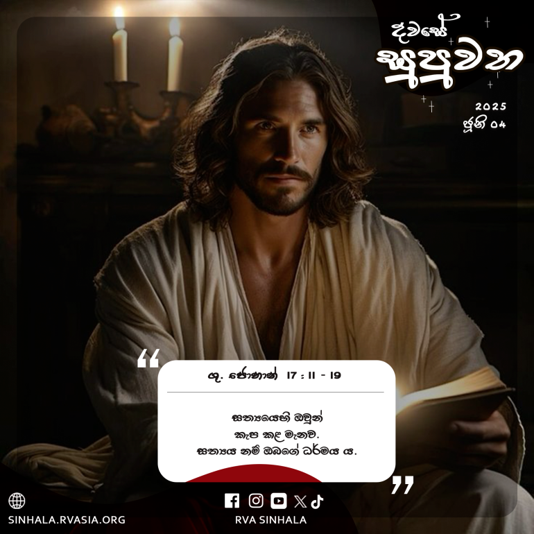 11 මම තවත් ලෝකයෙහි නොසිටිමි. එහෙත් ඔව්හු ලෝකයෙහි සිටිති. මම ඔබ වෙතට එන්නෙමි. සුවිශුද්ධ පියාණෙනි, අප මෙන් ඔවුන් ද, ඒකත්වයක් වන පිණිස, ඔබ මට දුන් ඔබගේ නාමයේ අනුහසින් ඔවුන් ආරක්ෂා කළ මැනව. 12 මම ඔවුන් සමඟ සිටිය දී ඔබ මට දුන් ඔබගේ නාමයේ අනුහසින් මම ඔවුන් ආරක්ෂා කෙළෙමි. මම ඔවුන් රැකබලාගතිමි. ශුද්ධ ලියවිල්ල සම්පූර්ණ වන පිණිස, විනාශයේ පුත්රයා හැර අන් කිසිවෙක් විනාශ නොවූ හ. 13 එහෙත් දැන් මම ඔබ වෙතට එමි. මා ලෝකයෙහි දී මේ දේවල් ප්රකාශ කරන්නේ, මාගේ ප්රීතිය ඔවුන් තුළ සම්පූර්ණයෙන් ම ඇති වන පිණිස ය. 14 මම ඔවුන්ට ඔබගේ දහම දුනිමි. මා ලෝකයට අයිති නොවන සේ ම, ඔවුන් ද ලෝකයට අයිති නොවන බැවින්, ලෝකයා ඔවුන්ට ද්වේෂ කළහ. 15 ඔබ ලෝකයෙන් ඔවුන් වෙන් කරන මෙන් මම යාච්ඤා නොකරමි; නපුරාගෙන් ඔවුන් ආරක්ෂා කරන මෙන් යාච්ඤා කරමි. 16 මා ලෝකයෙන් නොවන්නාක් මෙන් ම ඔව්හු ද ලෝකයෙන් නොවෙති. 17 සත්යයෙහි ඔවුන් කැප කළ මැනව; සත්යය නම් ඔබගේ ධර්මය ය. 18 ඔබ මා ලෝකයට එවා වදාළාක් මෙන්, මම ද ඔවුන් ලෝකයට යැවීමි. 19 ඔවුන් සත්යයට කැප වන පිණිස, මම ඔවුන් උදෙසා කැප වෙමි.