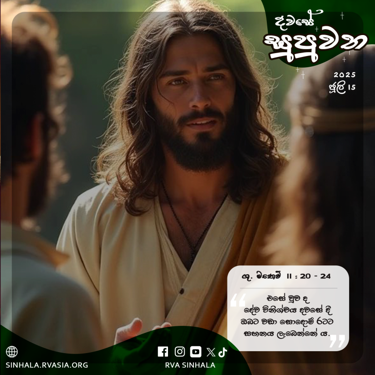 20 එකල උන් වහන්සේගේ ප්රබල ක්රියාවලින් බොහොමයක් කරනු ලැබූ නගරවල වැසියන් පසුතැවී සිත් හරවා නොගත් බැවින්, උන් වහන්සේ ඒවාට වරද තබන්න පටන්ගෙන මෙසේ වදාළ සේක: 21 ”එම්බා කොරාශීනය, ඔබට වන විපතක මහත! එම්බා බෙත්සයිදාව, ඔබට වන විපතක මහත! ඔබ තුළ කළ ප්රබල ක්රියා, තීර්හි හා සීදොන්හි කළා නම්, ඒ නගර වැසියන් මීට බොහෝ කලින් ගෝණි රෙදි ඇඳ, අළුයෙහි හිඳ පසුතැවී සිත් හරවාගත් බව පෙන්වනු ඇත. 22 එසේ වුව ද දේව විනිශ්චය දවසේ දී ඔබට වඩා තීර් හා සීදොනයට සහනය ලැබෙන්නේ යයි කියමි. 23 එම්බා කපර්ණවුම, ඔබ සගලොව දක්වා උසස් කරනු ලබන්නෙහි ද? නැත, පාතාලය දක්වා පහත හෙළනු ලබන්නෙහි ය. ඔබ තුළ කරන ලද ප්රබල ක්රියා සොදොම්හි කරන ලද්දේ නම්, එය අද වන තුරු පවතිනු ඇත. 24 එසේ වුව ද දේව විනිශ්චය දවසේ දී ඔබට වඩා සොදොම් රටට සහනය ලැබෙන්නේ ය.”