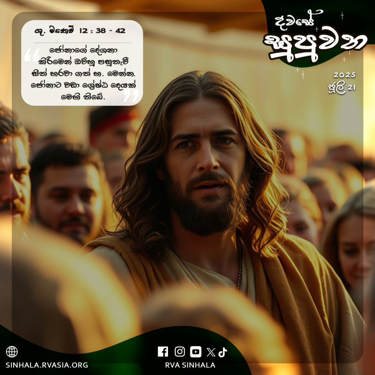 38 එවිට විනයධරයන් හා පරිසිවරුන්ගෙන් සමහරෙක් කතා කරමින්, ”ගුරුදේවයෙනි, ඔබ හාස්කමක් කරනු දකින්න අපි කැමැත්තෙමු”යි කී හ. 39 උන් වහන්සේ උත්තර දෙමින්, මෙසේ වදාළ සේක: ”හාස්කමක් සොයන්නේ අදමිටු අදේවදෘෂ්ටික පරම්පරාවකි. එහෙත්, ජෝනා දිවැසිවරයා පිළිබඳ හාස්කම හැර වෙන හාස්කමක් ඔවුන්ට නොදෙනු ලැබේ. 40 ජෝනා තල්මසාගේ උදරයෙහි දහවල් තුනක් ද රෑ තුනක් ද සිටියාක් මෙන්, මනුෂ්ය-පුත්රයාණන් ද පොළෝ ගැබෙහි දාවල් තුනක් ද රෑ තුනක් ද සිටිනු ඇත. 41 දේව විනිශ්චය දවසේ දී නිනිවයේ මිනිසුන් මේ පරම්පරාවට විරුද්ධ ව නැඟිට එය වරදට පත් කරනු ඇත. මන්ද, ජෝනාගේ දේශනා කිරීමෙන් ඔව්හු පසුතැවී සිත් හරවා ගත් හ. මෙන්න, ජෝනාට වඩා ශ්රේෂ්ඨ දෙයක් මෙහි තිබේ. 42 දේව විනිශ්චය දවසේ දී දකුණු දිශාවේ රැජිනිය මේ පරම්පරාවට විරුද්ධ ව නැඟිට එය වරදට පත් කරනු ඇත. මන්ද, එතුමිය සලමොන්ගේ ප්රඥාව අසනු වස් පොළොවේ සීමාවේ සිට පැමිණියා ය. මෙන්න, සලමොන්ගේ ප්රඥාවට වඩා ශ්රේෂ්ඨ දෙයක් මෙහි ඇත.”