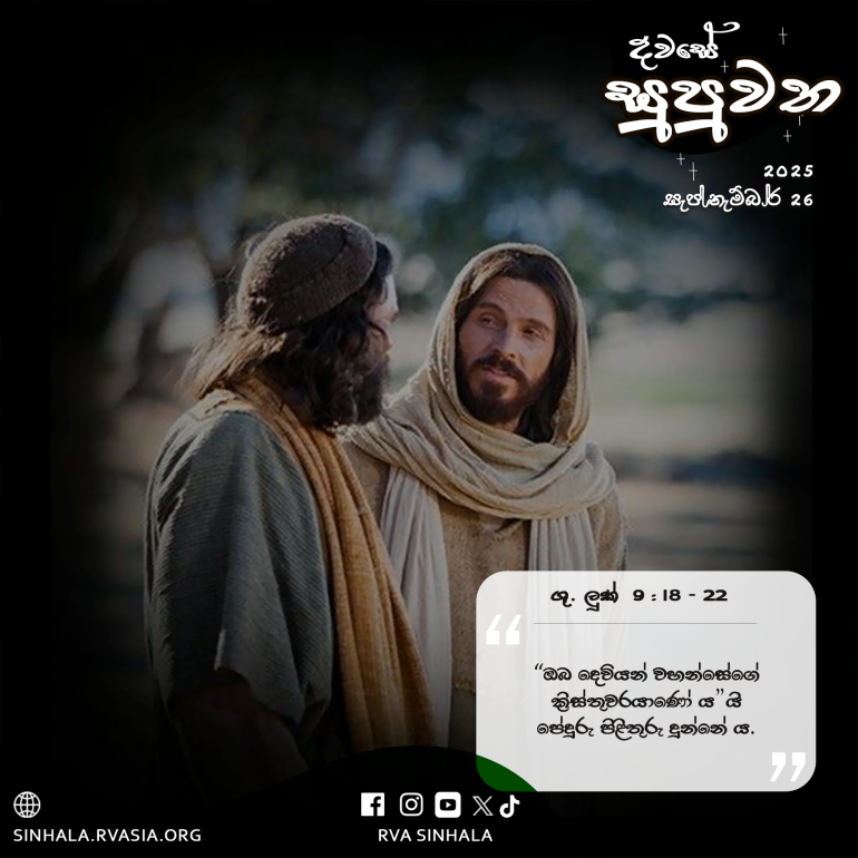 18 ඉන්පසු උන් වහන්සේ තනියම යාච්ඤා කරද්දී ශ්රාවකයෝ උන් වහන්සේ සමඟ සිටියහ. එවිට උන් වහන්සේ, ”මහජනයා මා කවරෙකැ යි කියද්දැ”යි ඔවුන්ගෙන් ඇසූ සේක. 19 ඔව්හු, ”සමහරු ‘ස්නාවක-ජොහන් ය’ කියාත් සමහරු ‘එලියා ය’ කියාත් අන් සමහරු, ‘ආදියෙහි සිටි දිවැසිවරයන්ගෙන් කෙනෙක් නැවත උත්ථාන වී ය’ කියාත් කියති”යි පිළිතුරු දුන්හ. 20 ”එහෙත්, ඔබ! ඔබ මා කවරෙකු කියා කියන්නහු දැ”යි උන් වහන්සේ ඔවුන්ගෙන් ඇසූ සේක. ”ඔබ දෙවියන් වහන්සේගේ ක්රිස්තුවරයාණෝ ය”යි පේදුරු පිළිතුරු දුන්නේ ය.