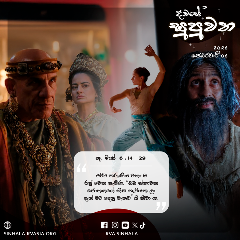 21 සුදුසු අවස්ථාවක් පැමිණියෙන්, හෙරොද් සිය ජන්මෝත්සව දින, තමාගේ උසස් නිලධාරීන්ට ද ප්රධාන සේනාධිපතීන්ට ද ගලීලයේ ප්රභූවරයන්ට ද මංගල භෝජනයක් පිළියෙළ කෙළේ ය. 22 එවිට හෙරෝදියස්ගේ දුව එහි පිවිස රඟ පා, හෙරොද්ගේ සහ ඔහු සමඟ භෝජන සංග්රහයට පැමිණ සිටි අමුත්තන්ගේ නෙත් සිත් පිනවූවා ය. එකල රජතුමා තරුණියට කතා කොට, ”ඔබ කැමැති ඕනෑම දෙයක් මාගෙන් ඉල්ලන්න, එය ඔබට දෙමි”යි කී ය. 23 තවද, ”ඉල්ලන ඕනෑම දෙයක්, මාගේ රාජ්යයෙන් අඩක් වුවත්, ඔබට දෙමි”යි ඔහු ඇයට දිවුරුම් දුන්නේ ය. 24 ඈ පිටතට ගොස්, ”මම කුමක් ඉල්ලම් දැ”යි ඇගේ මවගෙන් ඇසුවා ය. ”ස්නාවක ජොහන්ගේ හිස” යයි ඈ කීවා ය. 25 එවිට තරුණිය වහා ම රජු වෙත පැමිණ, ”ඔබ ස්නාවක ජොහන්ගේ හිස තැටියක ලා දැන් මට දෙනු මැනව”යි කීවා ය. 26 රජතුමා අතිශයින් ශෝක විය. එහෙත්, ඔහුගේ දිවුරුම නිසා ද, අමුත්තන් නිසා ද, ඈට දුන් පොරොන්දුව කඩ කරන්න අකමැති විය. 27 එකෙණෙහි ම රජතුමා මුර සෙබළෙකු යවමින් ජොහන්ගේ හිස ගෙනෙන්න අණ කෙළේ ය. ඔහු ද ගොස් හිර ගෙයි දී ජොහන්ගේ හිස ගසාදමා 28 එය තැටියක ලා ගෙනවුත්, තරුණියට දුන්නේ ය; තරුණිය ද එය මවට දුන්නා ය. 29 ජොහන්ගේ ගෝලයෝ ඒ ගැන අසා අවුත්, ඔහුගේ මෘත දේහය ගෙන ගොස්, සොහොන් ගෙයක තැන්පත් කළහ.