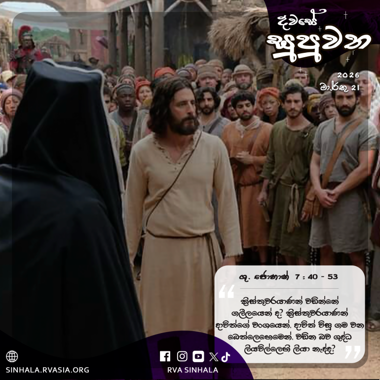 40 මේ වචන ඇසූ කල සෙනඟගෙන් සමහරු, ”මොහු, සැබැවින් ම ඒ දිවැසිවරයාණෝ ය”යි කී හ. 41 අන් සමහරු, ”මේ ක්රිස්තුස් ය”යි කී හ. තවත් සමහරු ”ක්රිස්තුවරයාණන් වඩින්නේ ගලීලයෙන් ද? 42 ක්රිස්තුවරයාණන් දාවිත්ගේ වංශයෙන්, දාවිත් විසූ ගම වන බෙත්ලෙහෙමෙන්, වඩින බව ශුද්ධ ලියවිල්ලෙහි ලියා නැද්දැ”යි ඇසූ හ. 43 මෙසේ උන් වහන්සේ නිසා සමූහයා අතර භේදයක් හටගත්තේ ය. 44 ඔවුන් අතරෙන් සමහරෙක් උන් වහන්සේ අල්ලාගන්නට සිතූ හ. එහෙත්, කිසිවෙක් උන් වහන්සේ පිට අත නොතැබූ හ.