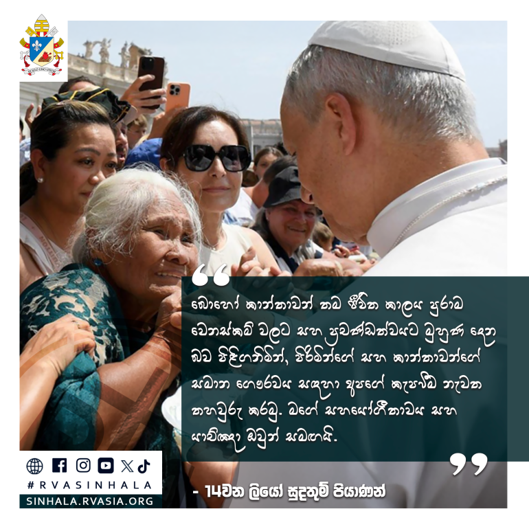 "බොහෝ කාන්තාවන් තම ජීවිත කාලය පුරාම වෙනස්කම් වලට සහ ප්රචණ්ඩත්වයට මුහුණ දෙන බව පිළිගනිමින්, පිරිමින්ගේ සහ කාන්තාවන්ගේ සමාන ගෞරවය සඳහා අපගේ කැපවීම නැවත තහවුරු කරමු. මගේ සහයෝගීතාවය සහ යාච්ඤා ඔවුන් සමඟයි.."