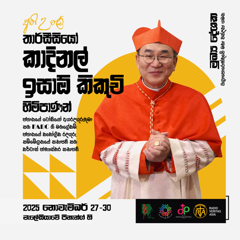 අති උතුම් තාර්සීසියෝ කාදිනල් ඉසාඕ කිකුචි හිමිපාණන් - ජපානයේ ටෝකියෝ අගරදගුරුතුමා සහ FABC හි මහලේකම්, ජපානයේ කතෝලික රදගුරු සම්මේලනයේ සභාපති සහ කරිටාස් ජාත්‍යන්තර සභාපති