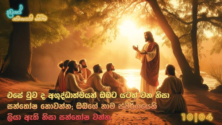 එසේ වුව ද අශුද්ධාත්මයන් ඔබට යටත් වන නිසා සන්තෝෂ නොවන්න; ඔබගේ නාම ස්වර්ගයෙහි ලියා ඇති නිසා සන්තෝෂ වන්න.
