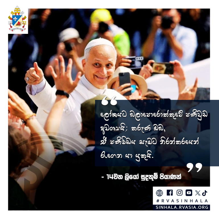 "ලෝකයට බලාපොරොත්තුවේ පණිවුඩ අවශ්යයි: තරුණ ඔබ, ඒ පණිවිඩය සැමට නිරන්තරයෙන් රැගෙන යා යුතුයි."