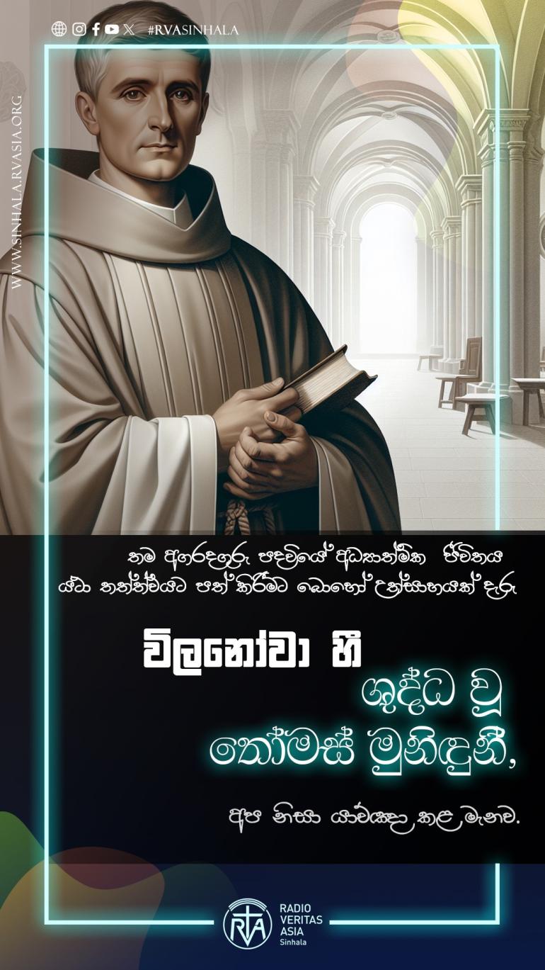 අද දින සුදුවර චරිතයෙන් සැප්තැම්බර් 22 වන දිනට මංගල්යය යෙදෙන විලනෝවා හී ශුද්ධ වූ තෝමස් මුනිඳුන් යදිමු.