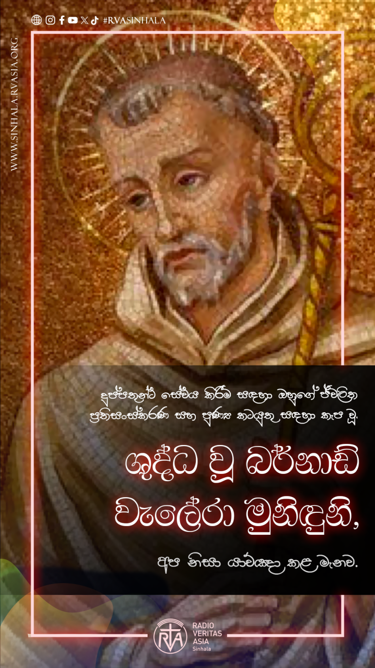 අද දින සුදුවර චරිතයෙන් දෙසැම්බර් 19 දිනට මංගල්යය යෙදෙන ශුද්ධ වූ බර්නාඩ් වැලේරා මුනිඳුන් ගැන කතා කරමු.