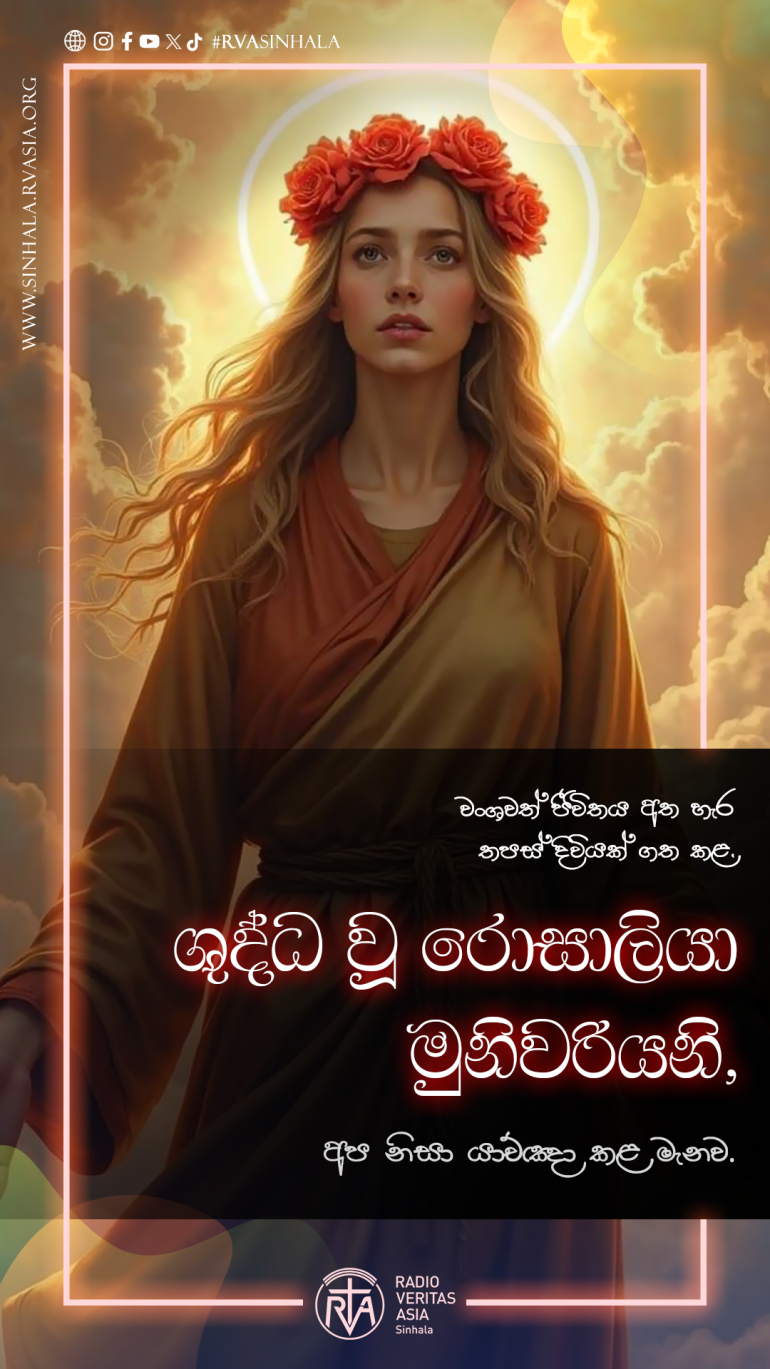 අද දින සුදුවර චරිතයෙන් සැප්තැම්බර් 04වන දිනට මංගල්යය යෙදෙන ශුද්ධ වූ රොසාලියා මුනිවරිය ගැන කතා කරමු.