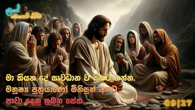 මා කියන දේ සාවධාන ව සිතට ගන්න, මනුෂ්ය පුත්රයාණෝ මිනිසුන් අතට පාවා දෙනු ලබන සේක.