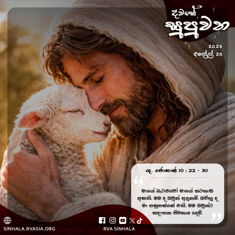 25 ජේසුස් වහන්සේ ඔවුන්ට පිළිතුරු දෙමින්, ”ඔබට මම කීවෙමි; එහෙත් ඔබ විශ්වාස නොකරන්නහු ය. මාගේ පියාණන් වහන්සේගේ නාමයෙන් මා කරන ක්රියාවෝ ම මා ගැන සාක්ෂි දෙති. 26 එහෙත්, ඔබ මාගේ බැටළුවන් නොවන බැවින්, මා විශ්වාස නොකරන්නහු ය. 27 මාගේ බැටළුවෝ මාගේ කටහඬ අසති. මම ද ඔවුන් අඳුනමි; ඔව්හු ද මා පසුපස්සේ එති. 28 මම ඔවුන්ට සදාතන ජීවනය දෙමි. ඔව්හු කිසි කලෙකත් විනාශ නොවෙති. කිසිවෙක් ඔවුන් මා අතින් පැහැර නොගනිති. 29 ඔවුන් මා හට දෙවා වදාළ මාගේ පියාණන් වහන්සේ සියල්ලන්ට ම වඩා ශ්රේෂ්ඨ ය. පියාණන් වහන්සේගේ අතින් ඔවුන් පැහැර ගන්නට කිසිවෙකුට නොහැකි ය. 30 මාත් මාගේ පියාණන් වහන්සේත් එක ම ය”යි වදාළ සේක.