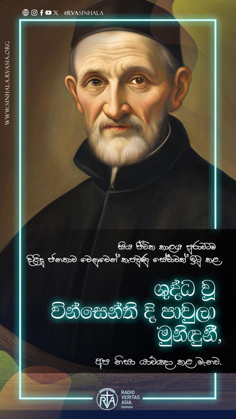 අද දින සුදුවර චරිතයෙන් සැප්තැම්බර් 27වන දිනට මංගල්‍යය යෙදෙන ශුද්ධ වූ වින්සෙන්ති දි පාවුලා මුනිඳුන් ගැන කතා කරමු.