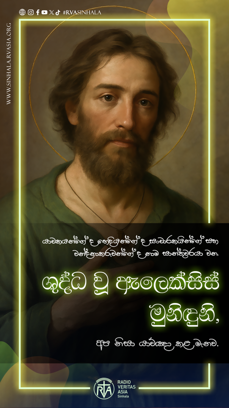අද දින සුදුවර චරිතයෙන් ජූලි 17වන දිනට මංගල්යය යෙදෙන ශුද්ධ වූ ඇලෙක්සිස් මුනිඳුන් ගැන කතා කරමු.