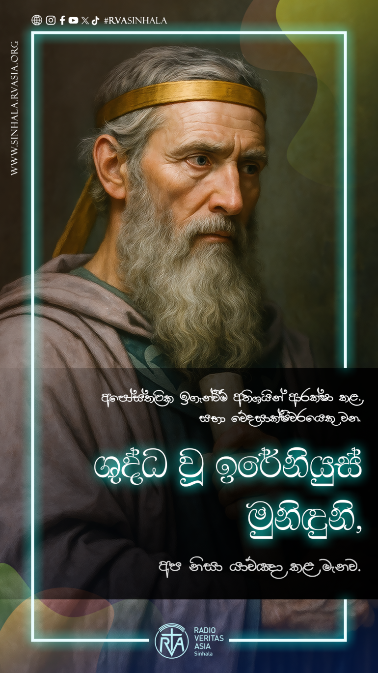 අද දින සුදුවර චරිතයෙන් ජුනි 28වන දිනට මංගල්යය යෙදෙන ශුද්ධ වූ ඉරේනියුස් මුනිඳුන් ගැන කතා කරමු.