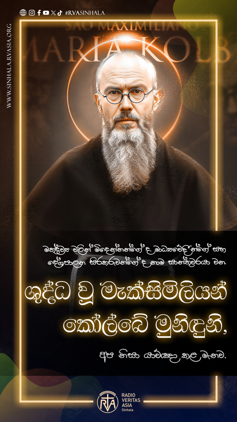 අද දින සුදුවර චරිතයෙන් අගෝස්තු 14වන දිනට මංගල්යය යෙදෙන ශුද්ධ වූ මැක්සිමිලියන් කෝල්බේ මුනිඳුන් ගැන කතා කරමු.
