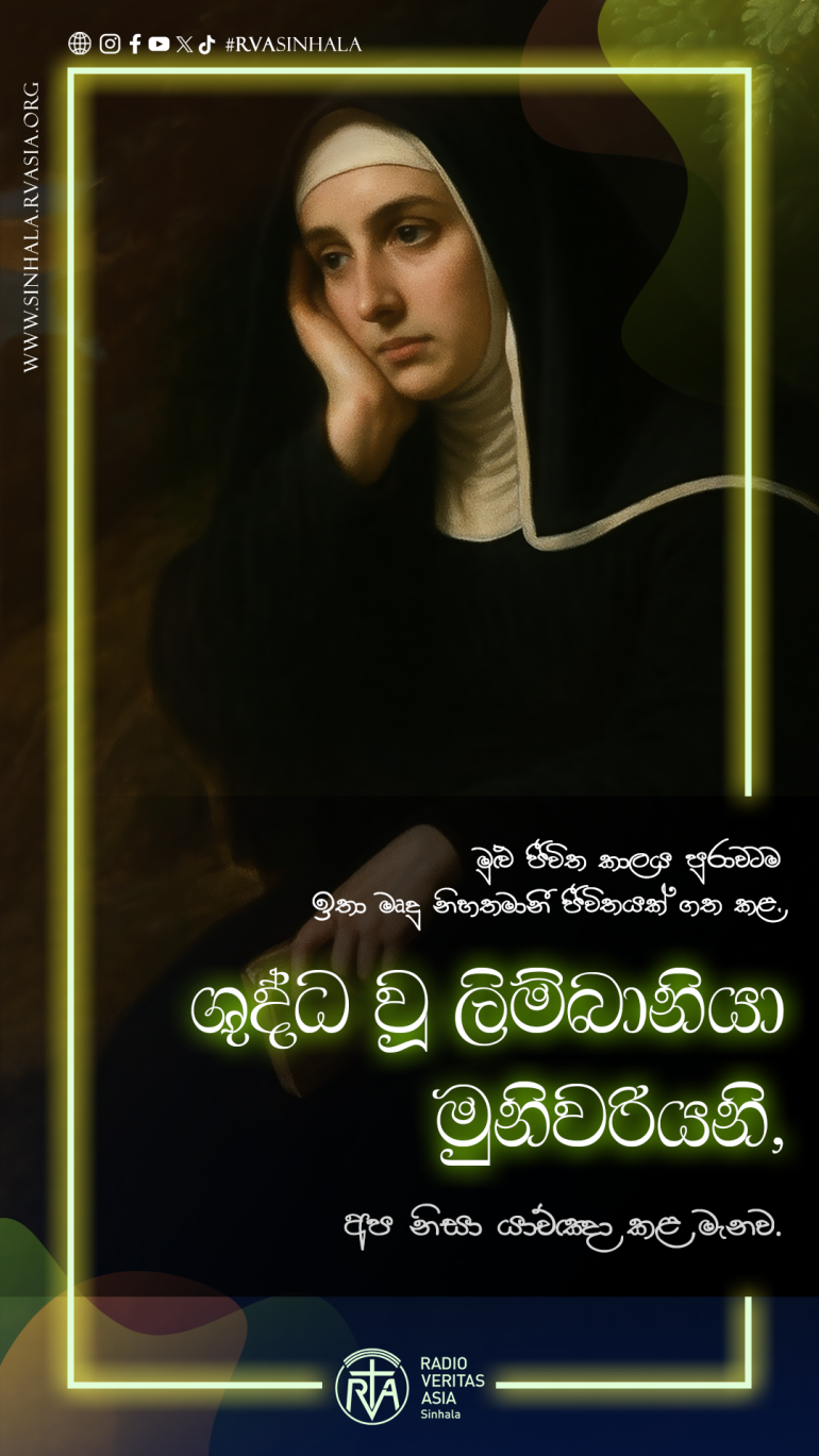 අද දින සුදුවර චරිතයෙන් අගෝස්තු 15වන දිනට මංගල්යය යෙදෙන ශුද්ධ වූ ලිම්බානියා මුනිවරිය ගැන කතා කරමු.