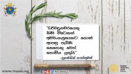 සසුන් පිය සටහන් සසුන් පිය සටහන් 2024 ජනවාරි 19 "අපි සාමය උදෙසා යාච්ඤා කරමු, අපි එය අපේම නිවෙස්වලින් ආරම්භ කරමු." -ෆ්රැන්සිස් පාප්තුමන්