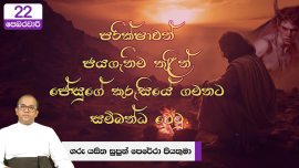 දහම් සර පරීක්ෂාවෙන් ජයගැනීම තුළින් ජේසුගේ කුරුසිය ගමනට සම්බන්ධ වෙමු. පරීක්ෂාවෙන් ජයගැනීම තුළින් ජේසුගේ කුරුසිය ගමනට සම්බන්ධ වෙමු.